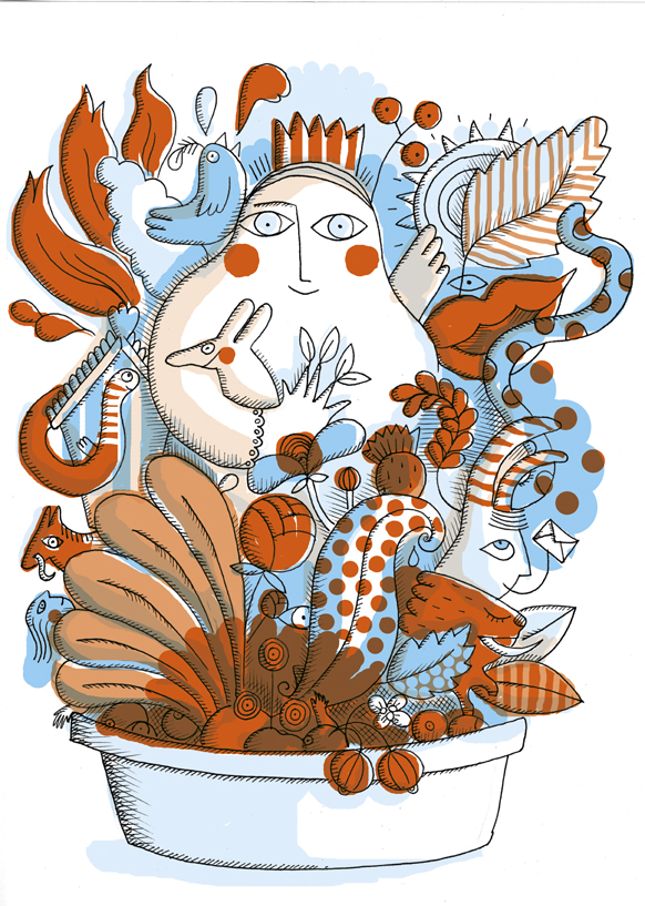 Mon zoo interne, mon microbiote joyeux, mon jardin sauvage peuplé d’êtres singuliers dont je dessine les contours et les histoires avec gourmandise et fantaisie.